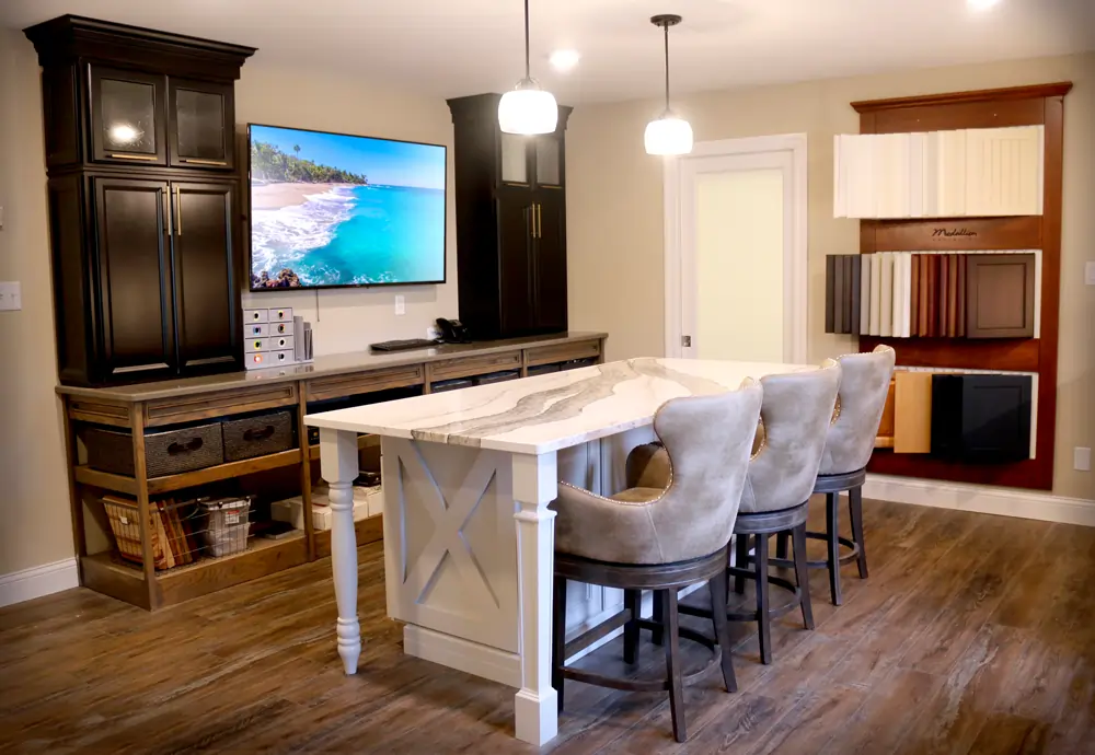 Through detailed discussions about your needs and preferences, we develop solutions that perfectly blend function and aesthetics. Our talented interior designers and remodelers utilize advanced 3D renderings, allowing you to visualize room layouts, cabinet designs, material selections, and more. We thrive on the collaborative process, turning your ideas into reality and ensuring every detail aligns with your vision.